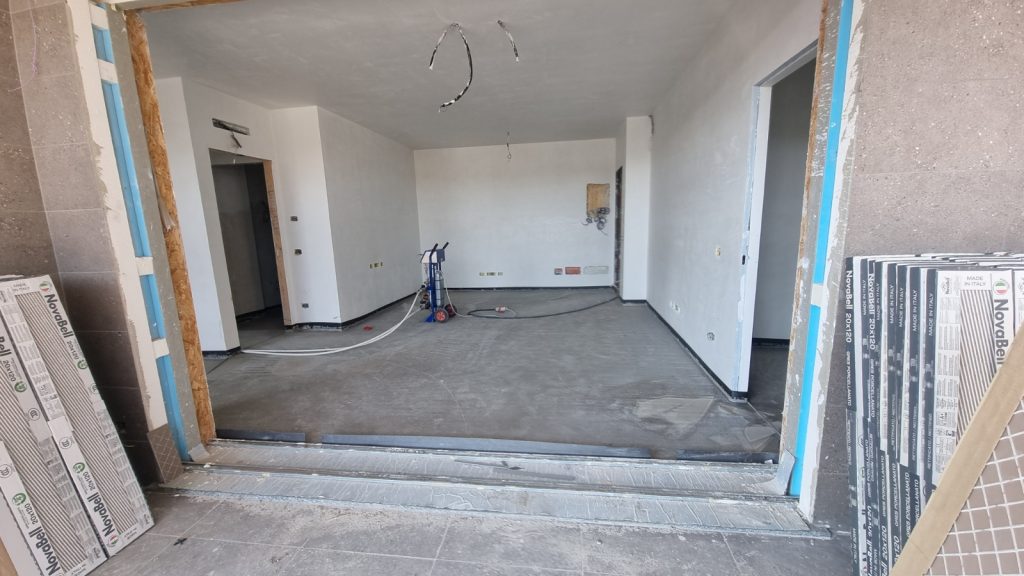 La realizzazione del massetto in questo apaprtamento a Lissone e la posa delle piastrelle sono fasi fondamentali per garantire la solidità e l’estetica del pavimento in una ristrutturazione di alta qualità. Il massetto, una base cementizia accuratamente livellata, è essenziale per creare una superficie stabile e uniforme su cui posare le piastrelle. Questo strato intermedio viene realizzato con precisione, assicurando una perfetta planarità e un’adeguata resistenza per supportare il carico del pavimento finito. Una volta completato il massetto, si procede con la posa delle piastrelle, selezionate in base al design e alle preferenze del cliente. Ogni piastrella viene installata con attenzione millimetrica, garantendo giunti uniformi e un allineamento perfetto. Questo processo meticoloso non solo assicura un risultato estetico eccellente, ma anche una durabilità e una funzionalità ottimali del pavimento, trasformando l’ambiente in uno spazio elegante e accogliente.