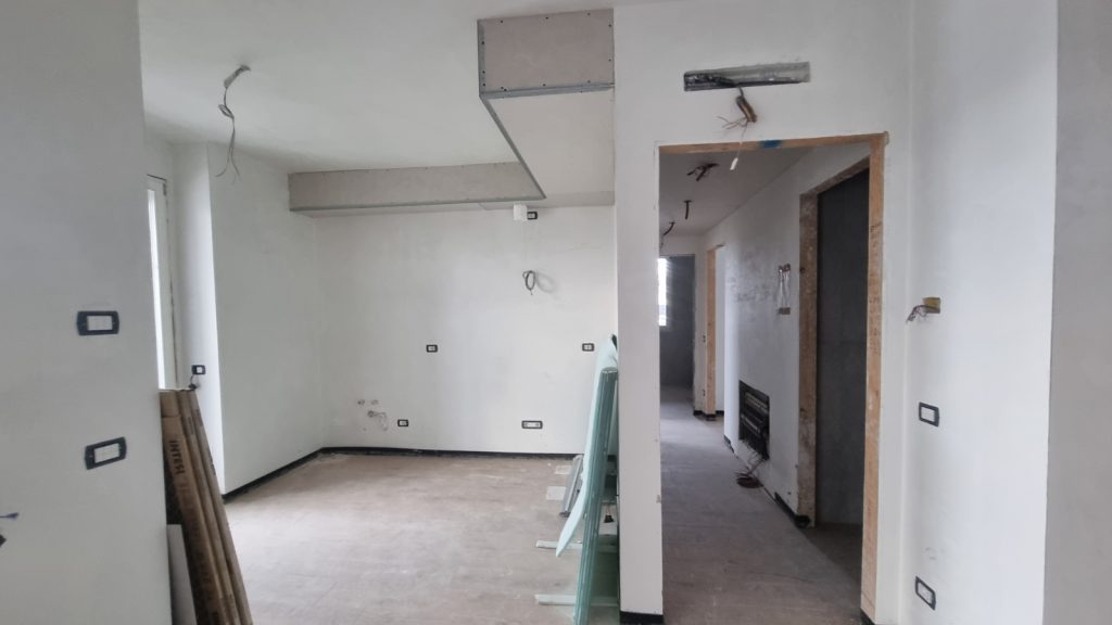 Proseguendo con i lavori di ristrutturazione di questo appartamento a Lissone, ci siamo concentrati sull’installazione dell’impianto elettrico e sugli abbassamenti in cartongesso, elementi fondamentali per migliorare la funzionalità e il design degli spazi. Per l’impianto elettrico, abbiamo scelto la serie Living Now di Bticino, sinonimo di innovazione e alta qualità. Questo sistema, con le sue linee moderne e la tecnologia avanzata, permette un controllo intelligente e personalizzato dell’illuminazione e degli apparecchi elettrici, aggiungendo un tocco di eleganza e praticità agli ambienti. Contemporaneamente, gli abbassamenti in cartongesso sono stati realizzati per ottimizzare l’illuminazione e nascondere gli impianti tecnici, creando un soffitto uniforme e raffinato. Questo intervento ha permesso di integrare faretti e sistemi di illuminazione indiretta, migliorando l’atmosfera e il comfort visivo delle stanze. La combinazione di un impianto elettrico all’avanguardia e soluzioni di design in cartongesso contribuisce a trasformare l’appartamento in uno spazio moderno, efficiente e accogliente.