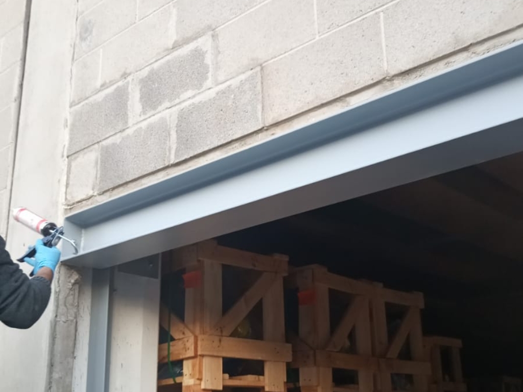 A seguito dell’installazione del portone, sono state eseguite le opere di finutura finale, ci siamo occupati di ripristinare il muro utilizzando gli stessi mattoni così da garantire l’uniformità della struttura. I laterali dell’apertura sono stati rifiniti con rasatura a civile per esterno, di colore grigio così da integrarsi perfettamente con la struttura.
