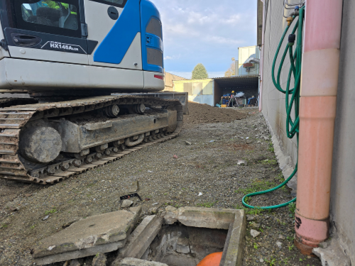 Contestualmente agli scavi, è stata rifatta completamente la linea delle acque chiare per garantire la corretta gestione delle acque meteoriche. Questo intervento è essenziale nelle ristrutturazioni esterne in Brianza per preservare la durabilità delle nuove strutture e prevenire problemi di ristagno idrico.