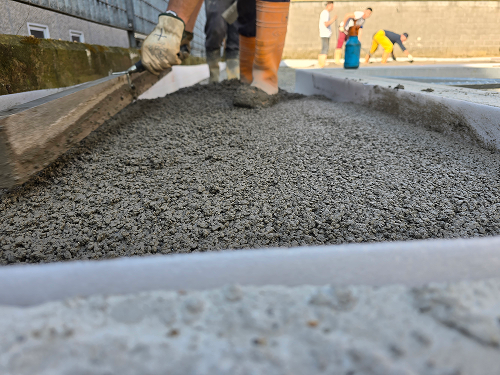 È stato steso accuratamente il sottofondo di preparazione, elemento fondamentale per garantire la corretta posa dei materiali successivi e la durabilità nel tempo della pavimentazione. La preparazione del sottofondo è cruciale per il successo dell’intera opera.
