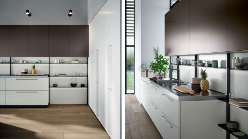 Considerando l’ampia modularità, diverse finiture pregiate, con l’ampia possibilità di personalizzazione delle tipologie di apertura, sono le caratteristiche delle nostre cucine. Quindi abbiamo deciso di offrire soluzioni funzionali ed estetiche, rispondiamo a diverse esigenze estetiche e progettuali che permettono l’integrazione di aree e funzioni.
