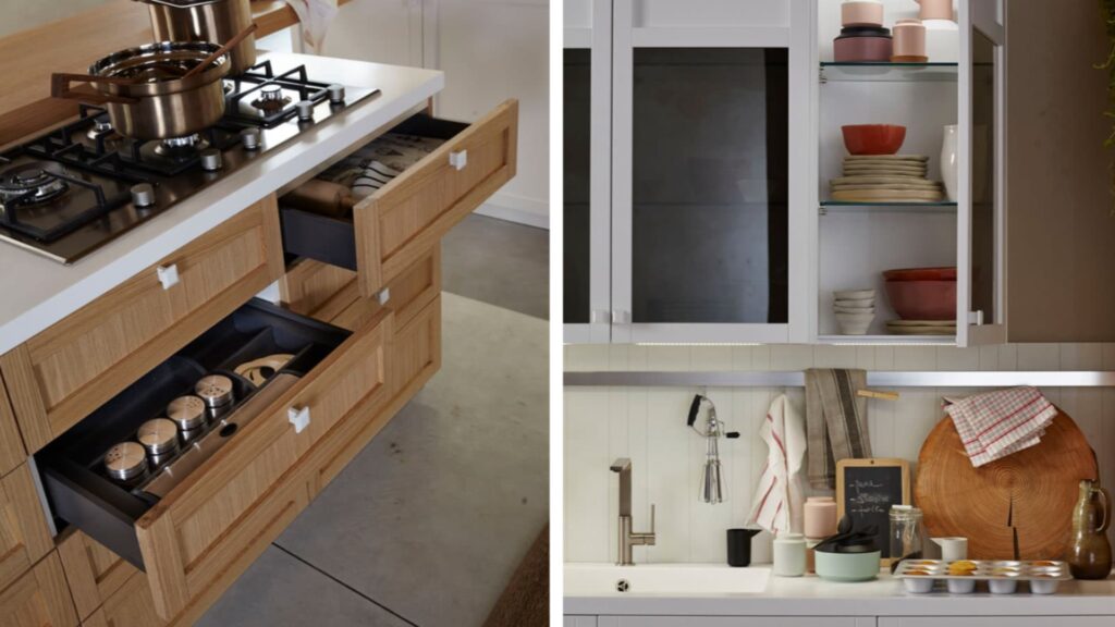 L’ordine aumenta lo spazio a disposizione. Quindi noi proponiamo un’ampia proposta di soluzioni pensate per valorizzare i mobili in cucina, sfruttando a pieno la capacità contenitiva di ogni elemento e facilitando l’accesso alle dispense ad angolo.
