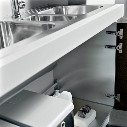 Le nostre cucine sono dotate di un sistema che offre un’estetica lineare, con spondine dritte che misurano solo 12,8 mm di spessore e una qualità del movimento eccellente, al fine di garantire una portata dinamica da 40 a 70 kg. Le guide sono dotata di serie del sistema frenante per il massimo comfort di utilizzo.