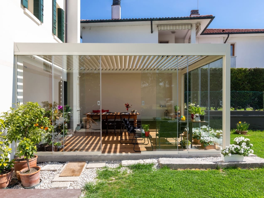 Una terrazza che diventa zona living, un angolo di giardino che si trasforma in zona relax, un salotto all’aperto da vivere tutto l’anno. Le pergole bioclimatiche hanno il sistema brevettato di copertura scorrevole ad impacchettamento che coniuga materiali innovativi, tecnologie d’avanguardia e design ricercato. Ampia possibilità di scelta tra la gamma su misura e personalizzabile per vivere al meglio ogni ambiente esterno anche nelle più difficili condizioni di sole, pioggia o vento forte.